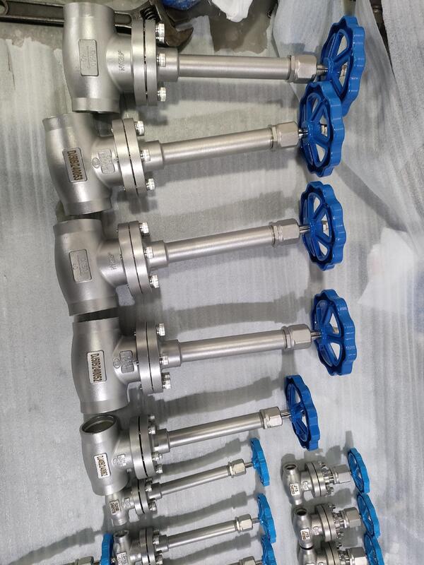 Cryogenic Long Stem Manual Globe valve, and temperature range from -196°C to +80°C It comes in sizes of3/8''-4'' and is made of PTFE, CF8 and CF3 materials. The valve is in long stem design and suitable for cryogenic applications LNG,LOX,LIN,LAR,CO2